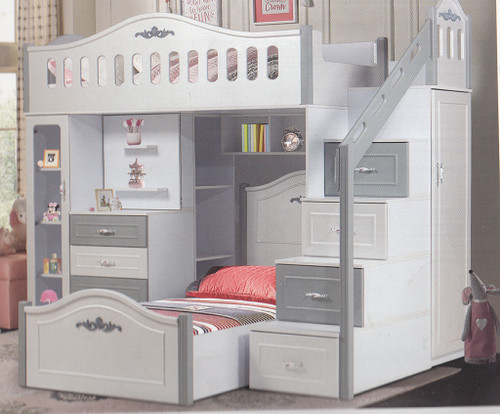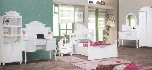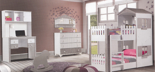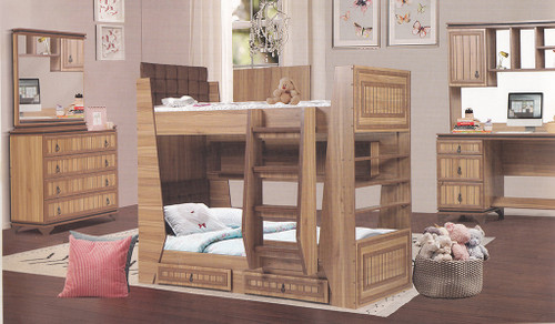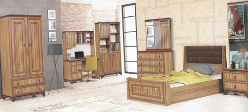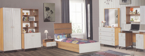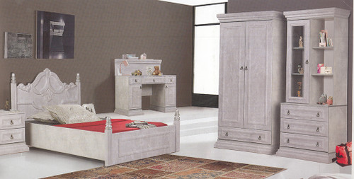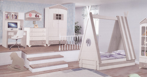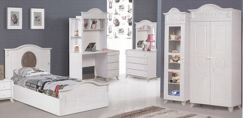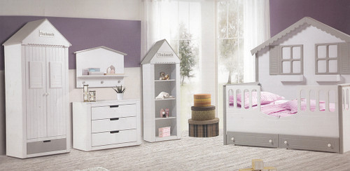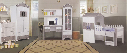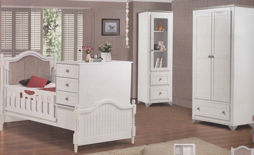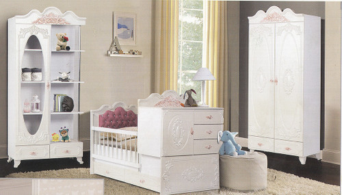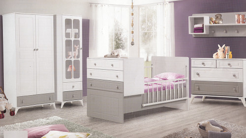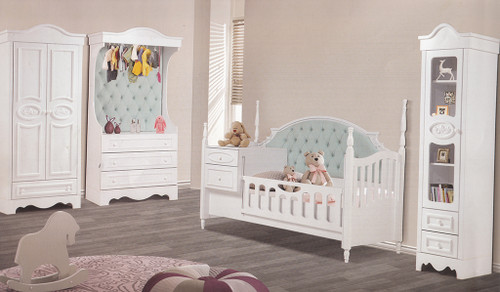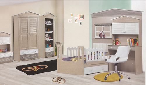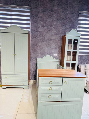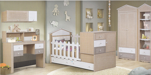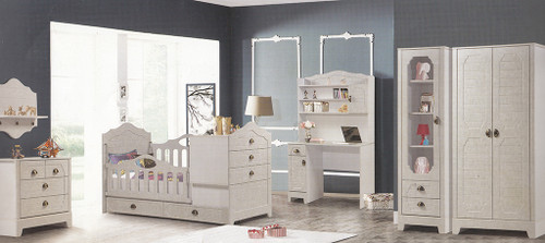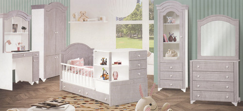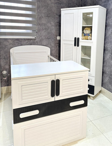 سرویس نوزاد نوجوان مدل پامچال دو تیکه (کمد ویترین دار و تخت دو منظوره)