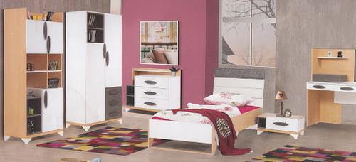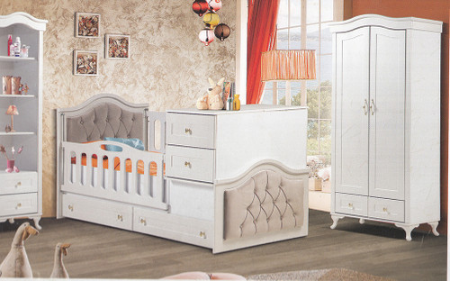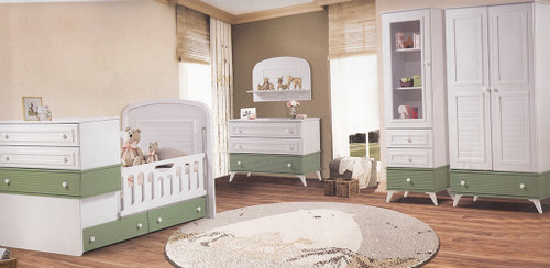 سرویس سه تیکه نوزاد نوجوان میلان (کمد و ویترین و تخت دو منظوره)