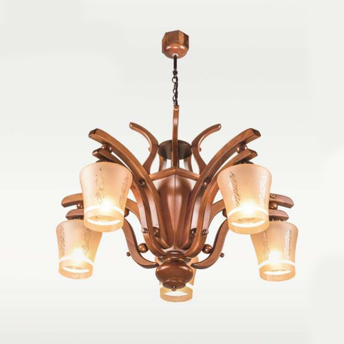 لوستر چوبی مدل رومن 5 شعله معکوس