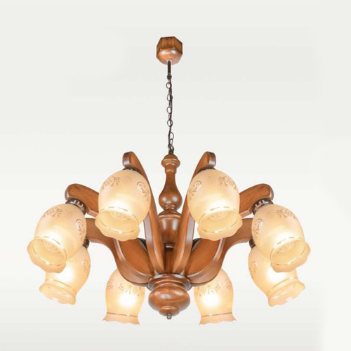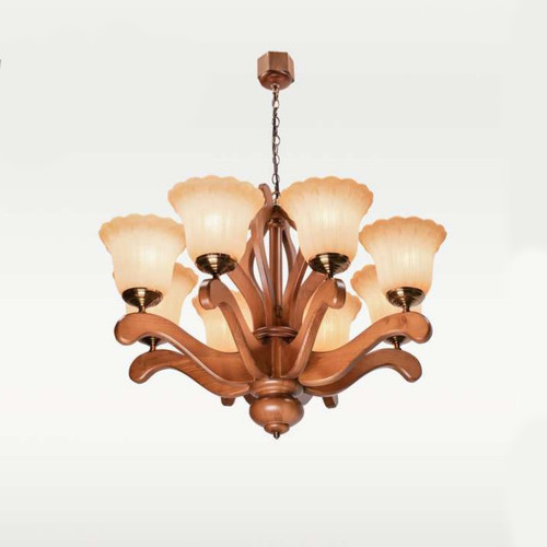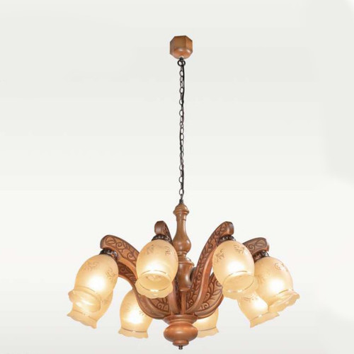 لوستر چوبی مدل مهسا 8 شعله منبت