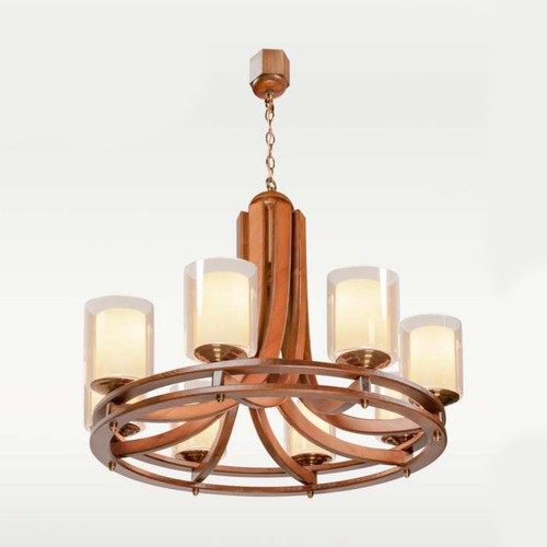 لوستر چوبی مدل خورشید 6 شعله آبکاری