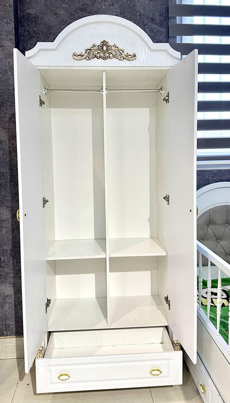 سرویس دو منظوره برکه شامل یک کمد دو درب با طبقه و کشو و یک ویترین و تخت دو منظوره نوزاد نوجوان میباشد