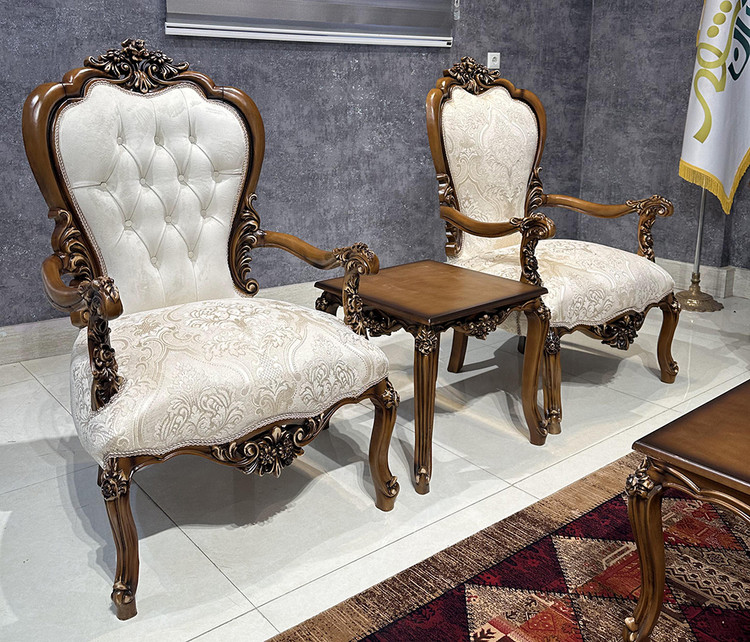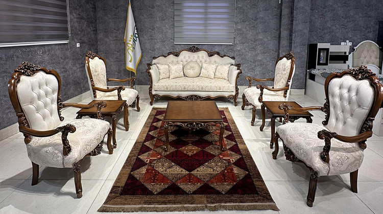 مبلمان استیل کلاسیک مدل فیروزه 9 نفره چوب راش و گردو