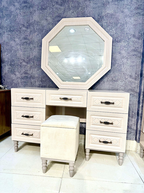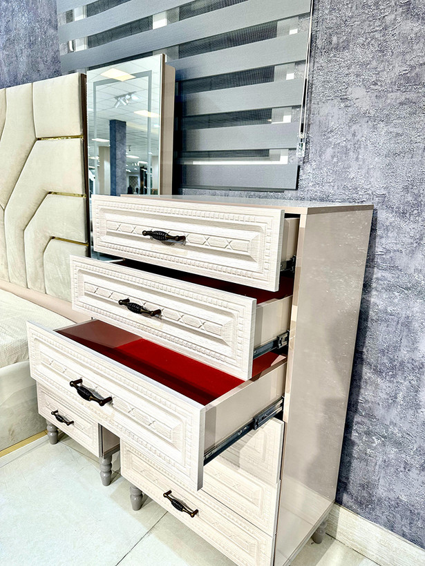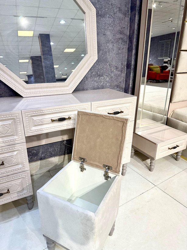 کشو اول میز ارایش برای اکسسوری و لوازم آرایش دسته بندی شده است.