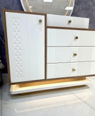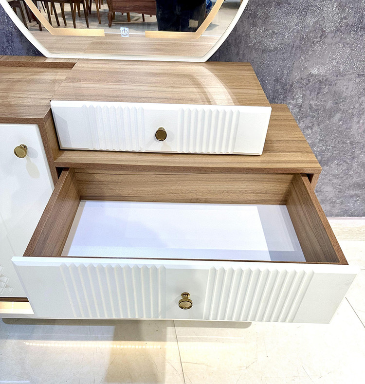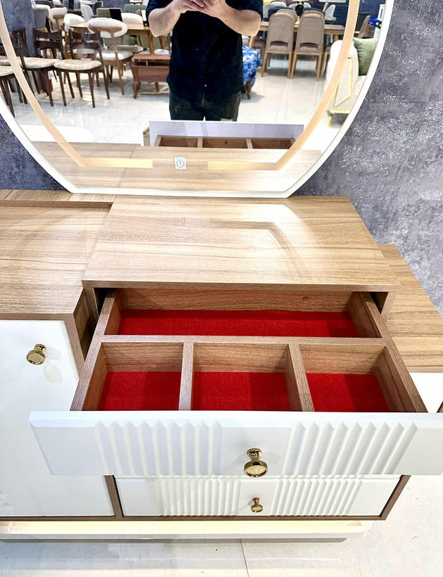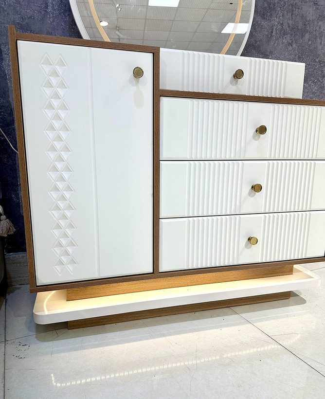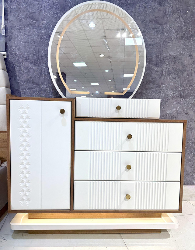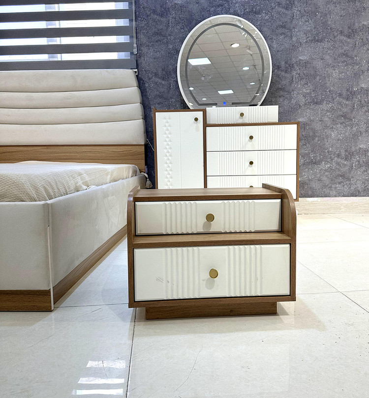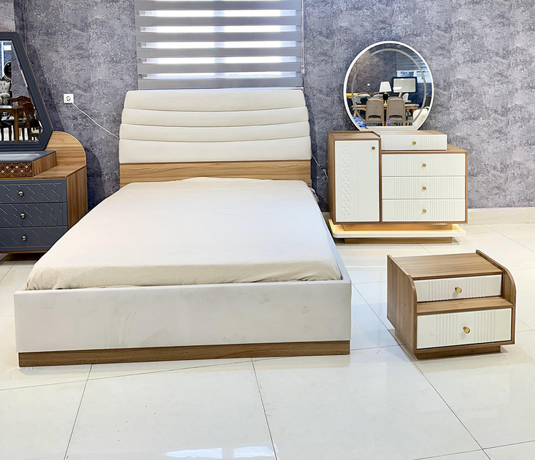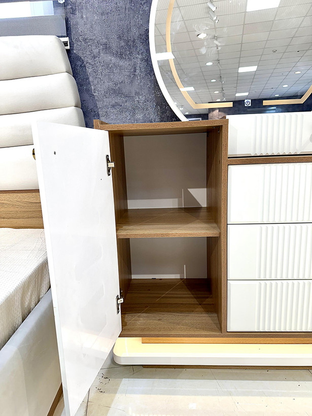 این سرویس خواب دارای آینه های بک لایت ( آینه نور دار ) ستفاده شده است که در طراحی داخلی این آینه ها افکتهای زیبا و جذابی ایجاد کنند.