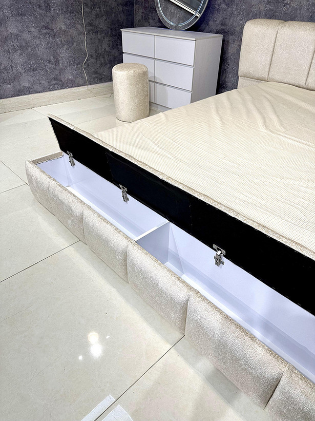 قسمت پایین تخت بخشی در نظرگرفته شده است به عنوان پاف تخت که کاربرد آن برای گذاشتن وسایل بوده است