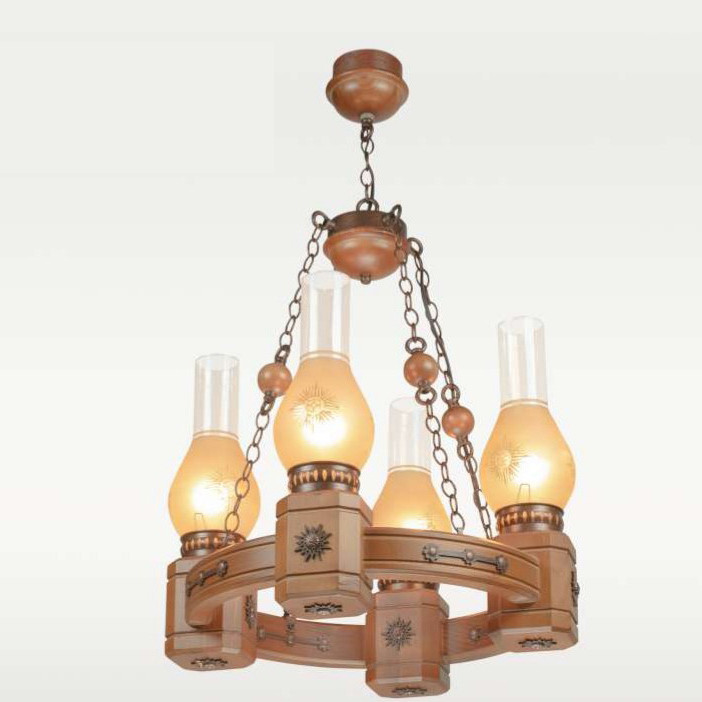 لوستر چوبی مدل روستیک 4 شعله