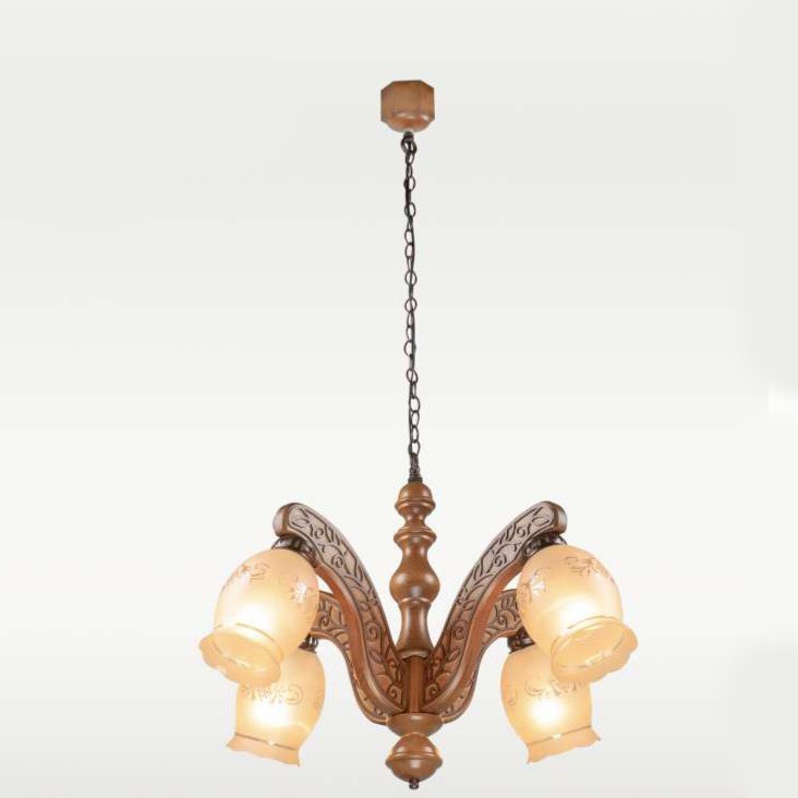لوستر چوبی مدل مهسا 4 شعله منبت