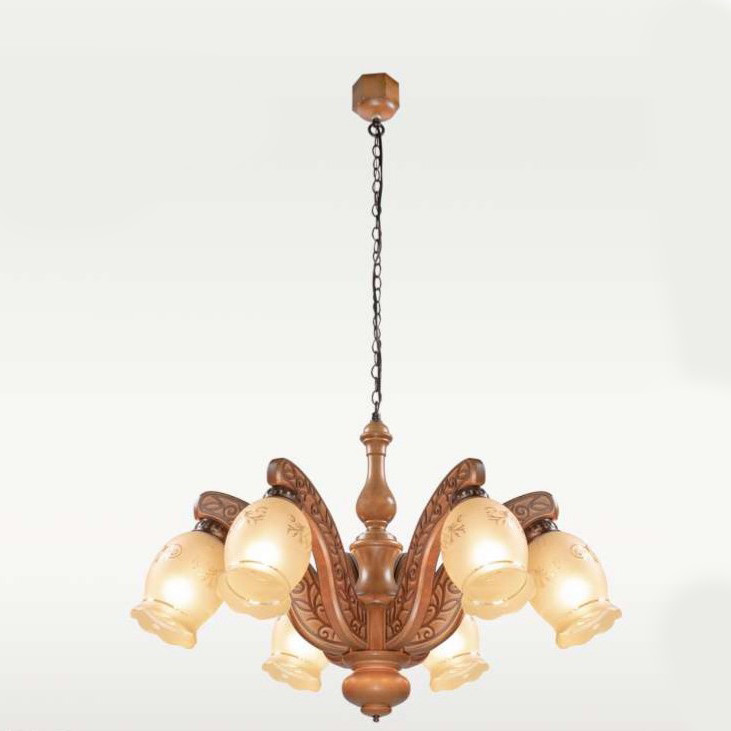 لوستر چوبی مدل مهسا 6 شعله منبت