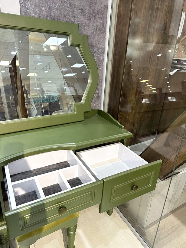 ورق استفاده شده در این سرویس تمام ام دی اف با پایه های چوب راش میباشد و از رنگ پلی اورتان برای این کار استفاده شده است
